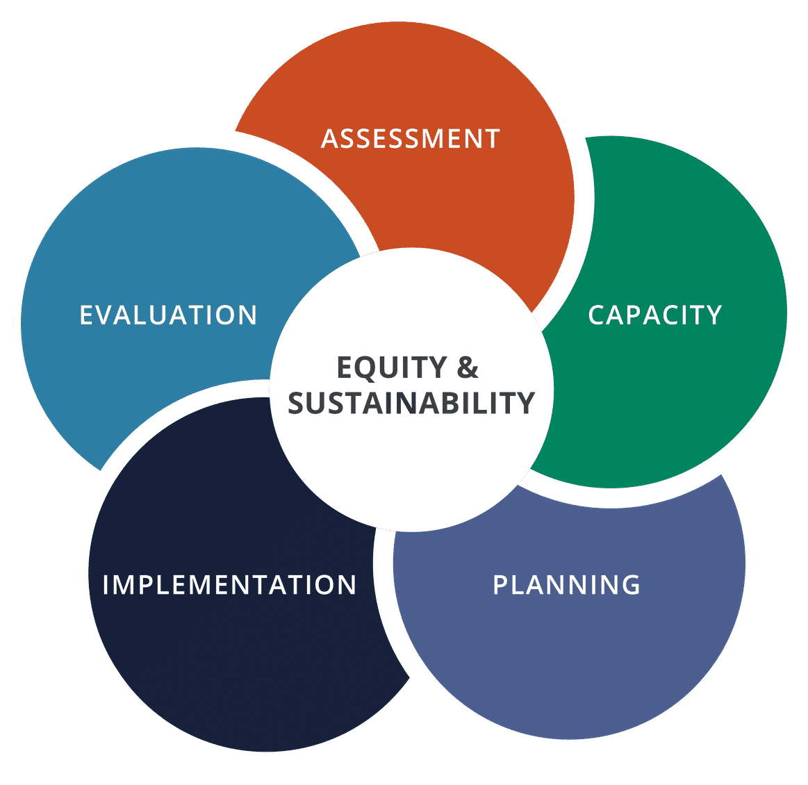 - Evaluación: Examinar el proceso y los resultados de los programas y prácticas (por ejemplo, ¿su plan está teniendo éxito?)