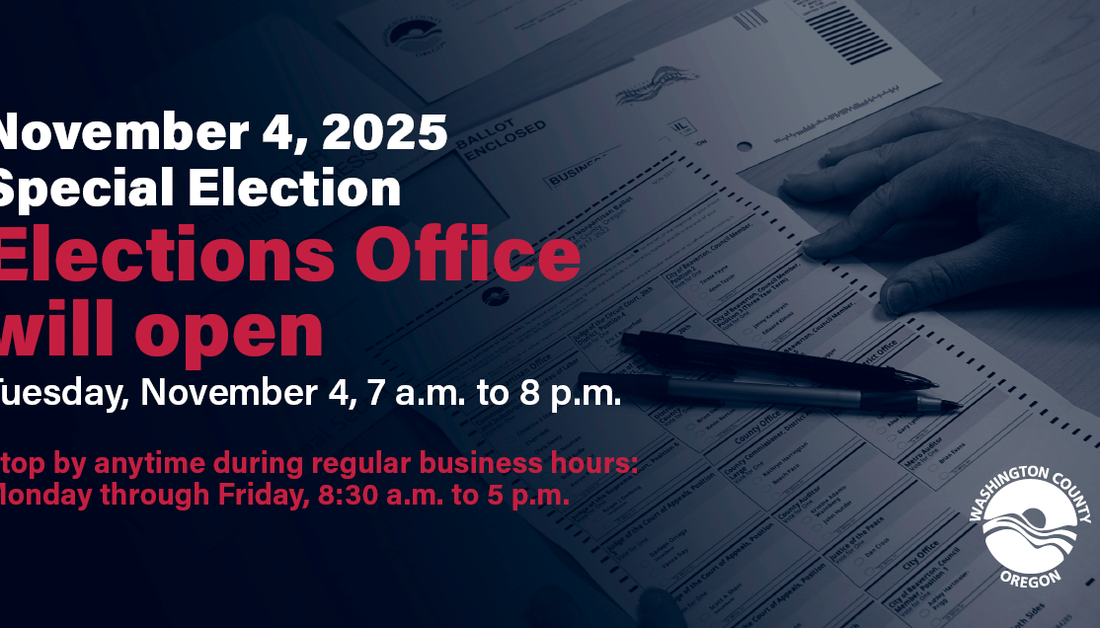 Washington County’s Elections Office will open be open today, November 4, from 7 a.m. to 8 p.m. Interpretation and translation services are available to voters who would like assistance in a language other than English. We have in-person Spanish interpretation available whenever our office is open, as well as telephone interpretation for many other languages. If you need assistance with your ballot, need to request a replacement, or would like to request help in a language other than English, please stop by the Elections Office located at 2925 NE Aloclek Dr, Hillsboro, OR 97124 as soon as possible.