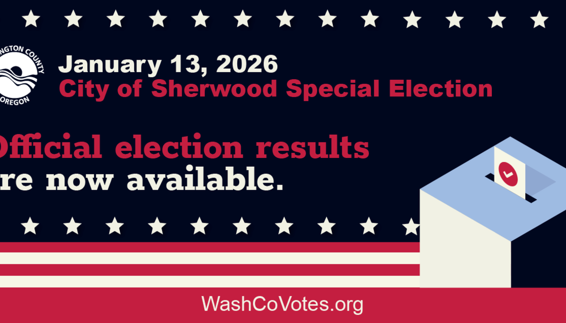 Washington County’s certified results for the City of Sherwood’s January 13, 2026, Special Election have been posted to the County’s election website. Copies of these results were sent to the Secretary of State's Elections Office on February 6, 2026.