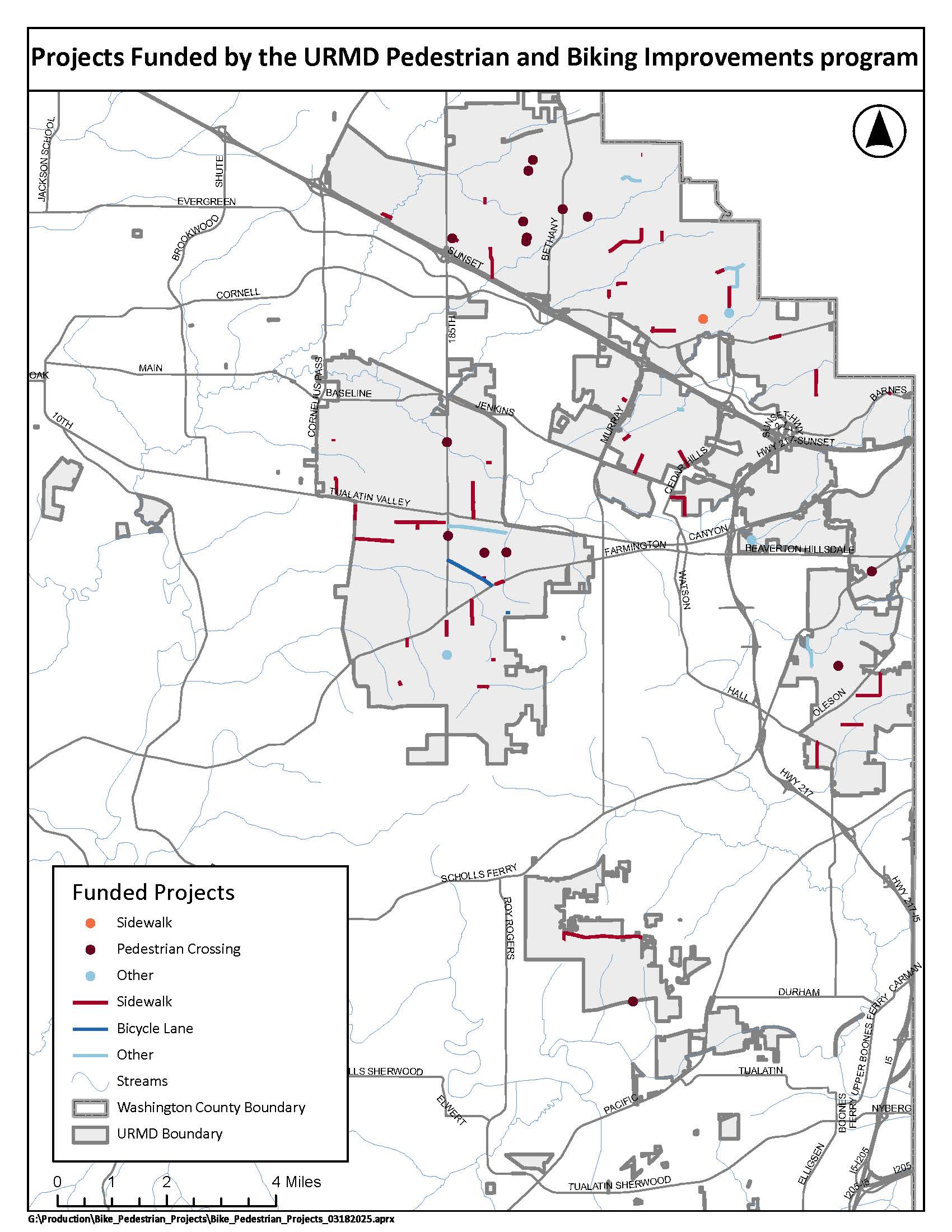 Between 2011 and 2023, the Urban Road Maintenance District (URMD) Pedestrian and Biking Improvements (PBI) program funded 75 sidewalk, pathway and bicycle lane projects totaling over $39.5 million.