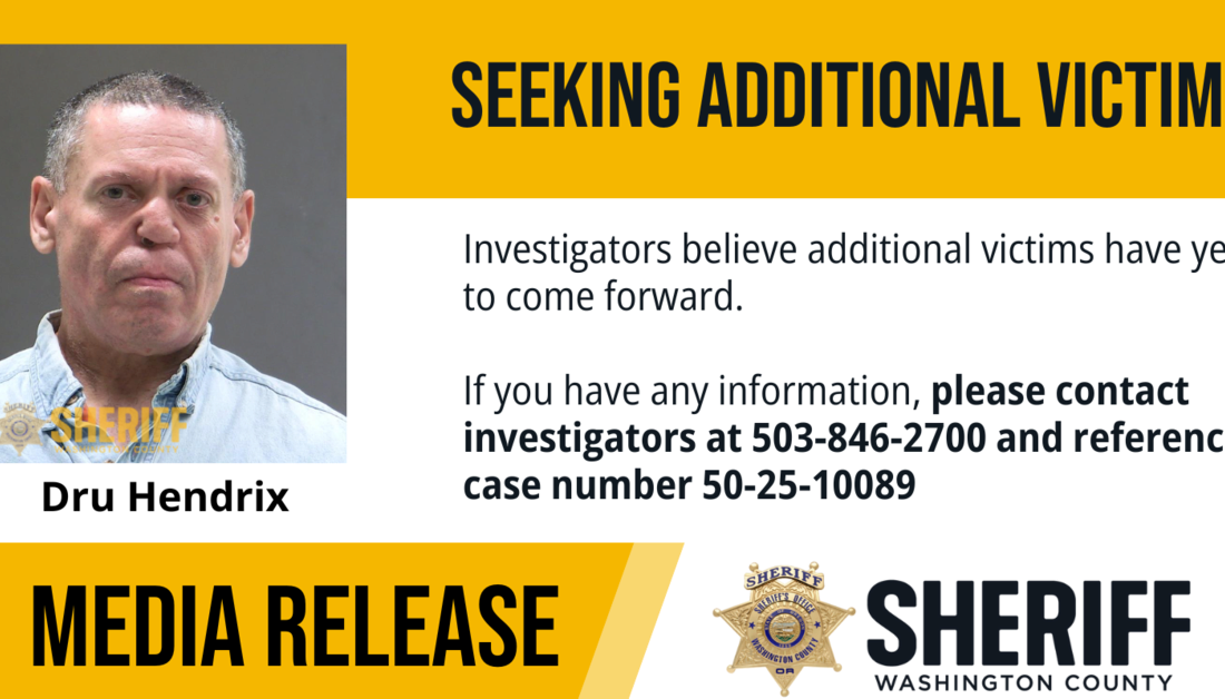 Detectives from Washington County, the Scappoose Police Department, and the Portland Police Bureau continue to investigate the new reports and would like to speak with anyone who has not yet come forward. If you have information, please call the Washington County Sheriff’s Office at 503-846-2700 and reference case 50-25-10089 to speak with a detective.